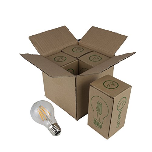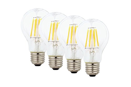 Truth LED Edison Style A19 Filament 6.5 watt (60 watt Incandescent) Clear Glass, Dimmable, E26 Base, Indoor/Outdoor, LED Light Bulb; Warm White (2700K), 4-pack