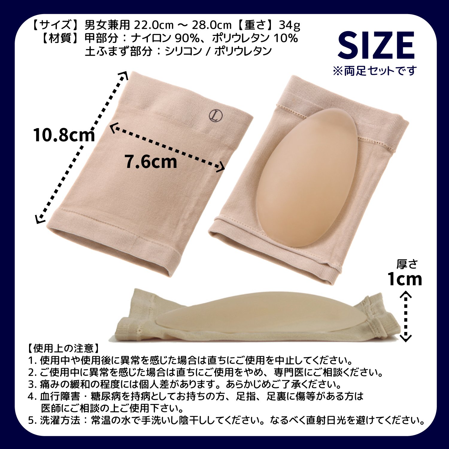 【Size】 Unisex 22.0 cm ~ 28.0 cm vertical 10.8 cm × side 7.6 cm × thickness 1 cm left and right set