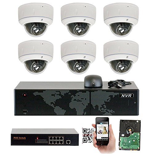 5MP HD 1920P Video Recording 8 Channel NVR with (6) 1920P Max 5.0 Megapixel 2.8~12mm Varifocal Manual Zoom POE IP Dome Cameras