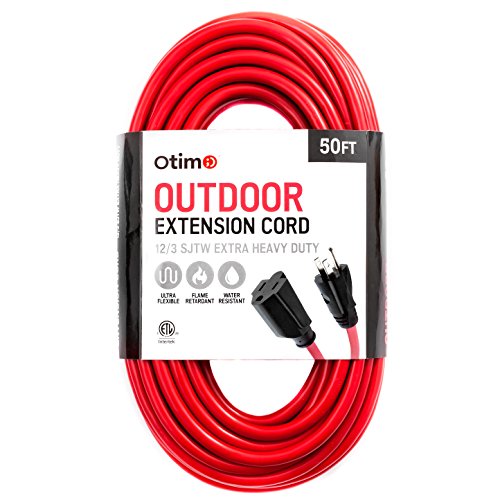 Otimo 50 ft 12/3 Outdoor Extra Heavy Duty Extension Cord - 3 Prong Extension Cord, Red