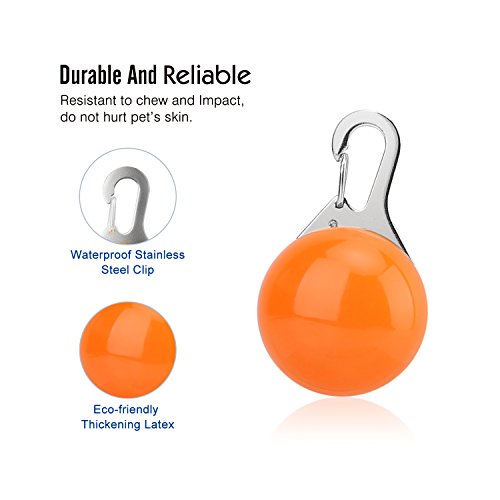 Pawaboo Clip-on Safety LED Lights This Clip-on Safety LED light provide a quick and easy light. Secure stainless steel carabiner attaches quickly to your pet's collar, jackets, key rings and almost anywhere. Bright LED light ensure good visibility and safety, perfect for night walking. Product Description: Made of premium ABS and stainless steel material, with robust constuction, lightweight and durable. Emits long-lasting strong lights that is visible for 800 meters, keeps you and your pet safe at night. Stainless steel carabiner design for wide application, easy to use as a clip on light for a dog or cat collar, gear or apparel light or keychain light. Can be attached to key ring, zipper hole or other things with hook or hole, a quick and easy attachment for daily life and outdoor activity at night. Simply press the light source button and the LED lights will light up brightly. Instruction for use: press the light source button for the first time for steady on, the second time for fast flashing, the third time for slow flashing, the fourth time for shut off. With CR2032 battery included, runs up to 40-50 hours. Specifications Details: ? Item Dimension: 2(L) x 1.2(W) x 0.8(H) Inches ? Item Weight: 0.6 ounce ? Material: ABS Stainless Steel ? Battery Replacement: 1 x 3V CR2032 Coin Battery ? Package: 5 x LED Lights ? Color: Orange, Yellow, Green, Blue, Red Safety Warning: ? CHOKING HAZARD: Contains small parts. NOT suitable for children under 3 years old. 0 |