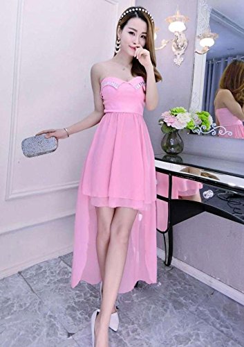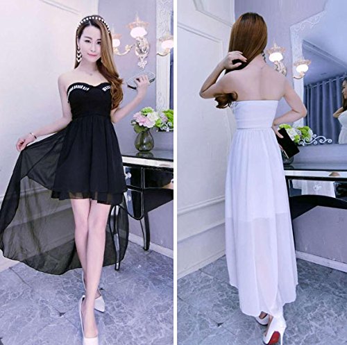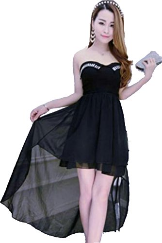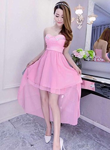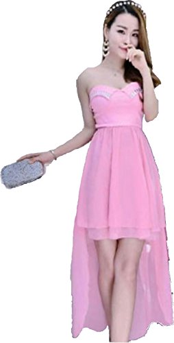 -. Title : ベアトップ Aラインミニワンピース パーティードレス ビジュー付き シフォン 結婚式 フォーマル 黒 白 ピンク 薄ピンク フリーサイズ
