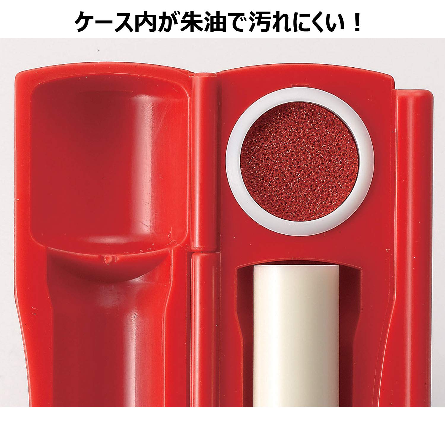 【収納サイズ】直径12mm×長さ60mmまでの印鑑が1本収納可能 【付属】朱肉付き 【ご注意】朱肉の補充カートリッジ、朱の油はありません。※印鑑は商品に含まれません。 【寸法】88×28×18mm 【重量】20.1g
