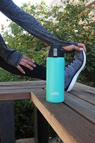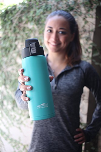 Aquatix (Turquoise, 21 Ounce) Pure Stainless Steel Double Wall Vacuum Insulated Sports Water Bottle with Convenient Flip Top - Keeps Drinks Cold for 24 Hours, Hot for 6 Hours