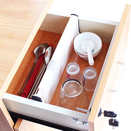 ✔ MATERIAL:Made of durable plastic,extremely sturdy,Spring loaded,Adjustable&Expandable,Soft foam cushion on each end and protect drawers from scratches.