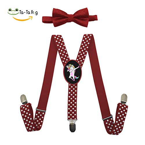 (QZ-Lee)/Accessories/Suspenders Cummerbunds/DIRECT FROM USA/QZ-Lee Cool Dabbing Unicorn Back Suspenders Bowtie Set Red