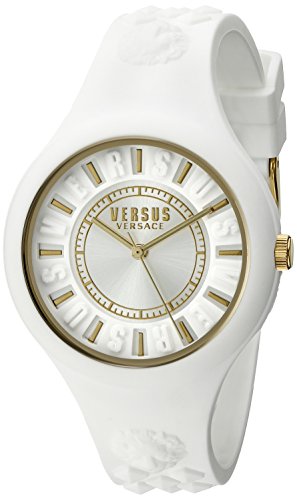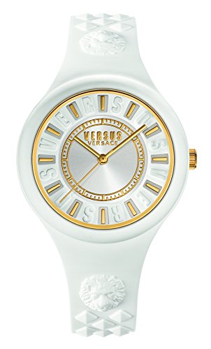 -. Binding : Watch -. Brand : Versus by -. Color : Yellow Gold/White -. Department : womens -. EAN : 7630030505188 -. Feature : Citizen 2035 quartz movement / White silicone strap with Versus lion logo on both sides / Quartz Movement / Case Diameter: 39mm / Water Resistant To 165 Feet -. Label : First SBF Holding Inc. -. Manufacturer : First SBF Holding Inc. -. Model : SOQ040015 -. MPN : SOQ040015 -. PackageQuantity : 1 -. PartNumber : SOQ040015 -. ProductGroup : Watch -. ProductTypeName : WATCH -. Publisher : First SBF Holding Inc. -. Studio : First SBF Holding Inc. -. Title : Versus by Women's SOQ040015 Fire Island Analog Display Quartz White Watch