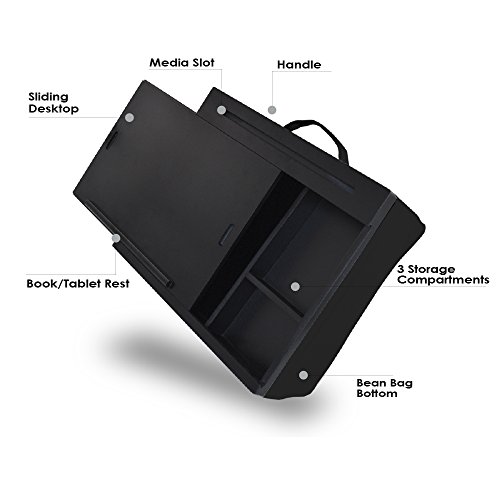 -. Feature : IT'S A BRIEFCASE. IT'S A DESK. IT'S A WORKSTATION: With its storage compartments and handy carrying handle, this lap desk is ly suited for taking what you need for a day's work, anywhere you care to go / ERGONOMIC AND COMFORTABLE ANYTIME, ANYWHERE: The iCozy lapdesk lives up to its name: no matter where you go, the microbead cushion at the bottom offers cozy, ergonomic, customizable working comfort. You'll be so comfortable you'll need to set reminders to take breaks! / OFFICE? YES. HANDY LEISURE READING AID? YEP: With three built-in compartments for stashing your tablet, notebook (the paper kind) and small office supplies, not to mention a paperback novel and sunglasses, you're ready for work or a day by the pool / AMPLE WORKTOP FOR ANY SIZE COMPUTER: Whether it's a tablet or a full-blown laptop with a 17 inch screen, this versatile lap desk will accommodate whichever portable computer type you want or need to use. Anywhere / PRODUCT DIMENSIONS: 14" Height x 18" Width x 6" Length