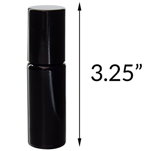 10 ml / 0.34 oz Black Ultraviolet Glass Roll On Bottle with Steel Roller Ball (4 Pack) Air, Water, and Oil Tight Container
