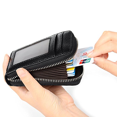 -. Binding : Apparel -. Brand : Lomory -. Department : womens -. Feature : ZIP AROUND ACCORDION DESIGN. Features zip around closure and 11 accordion style compartments which allow you to fit at least 10 credit cards, some folded cash and coins. Great card wallet to just grab and go. / RFID BLOCKING MATERIAL. There's a hidden RFID blocking material between the outside leather and the polyester lining. It keeps your ID cards and credit card information safe from electronic pick-pocketing. / OUTSIDE ID WINDOW AND CARD SLOT. a clear ID window and another card slot on the back. The card slot is also lined with the RFID blocking material. / MADE FROM DURABLE GENUINE LEATHER. The accordion wallet is made from premium genuine leather, which makes it durable and long lasting. Nice stitching and secure metal zipper. / PERFECT GIFT FOR YOUR SPECIAL ONES. It's a wonderful gift for your friends and family members. Choose this palm-size card wallet and you'll love it! -. ProductGroup : Apparel -. ProductTypeName : ACCESSORY -. Size : Mini -. Title : RFID Blocking Genuine Leather Credit Card Holder Case minimalist pocket wallet Organizer Compact Wallet with ID Window