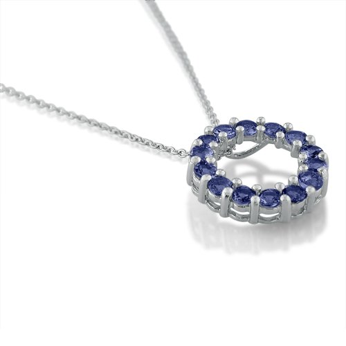 -. Title : Tanzanite Circle Pendant - Necklace set in Sterling Silver on an 18 in. Chain