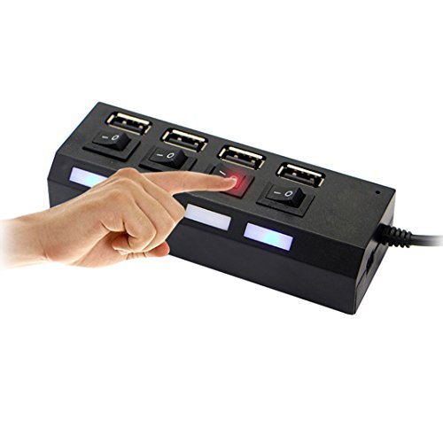 -. Feature : USB OTG HUB: Innovative 4 port USB hub with OTG support, convenient data transfer solution for tablets and other mobile devices; Compact and portable; Length of the USB cable of 35cm, Special for Laptop/ Ultrabook/ MACBOOK/ Tablet PC and PC. / SAFE AND RELIABLE: Built in Overvoltage/Overcurrent/Leakage and Short-Circuit protection unit; The connection cable is attached to the hub -no need to worry about leaving it behind or losing it. / LED & ELECTRIC SWITCH: Each port correspond an electric switch, Turn On & Turn Off, Support plug and play;Each port with a LED light, it will light on when connected to computer or laptop. / PLUG & PLAY: No driver required. It supports hot-swap, meaning you can safely plug in or unplug while the PC is running. / MASSIVE EXPANSION: Provide 4 ports USB to connect 4 USB devices for accessing; Support for Windows 8/ 7/ Vista/ XP etc.