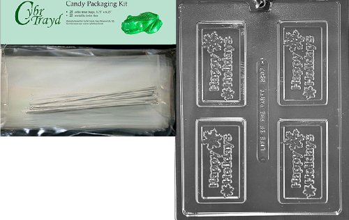 Cybrtrayd "Happy Holidays" Business Card Chocolate Candy Mold with Packaging Bundle of 25 Cello Bags, 25 Silver Twist Ties and Chocolate Molding Instructions