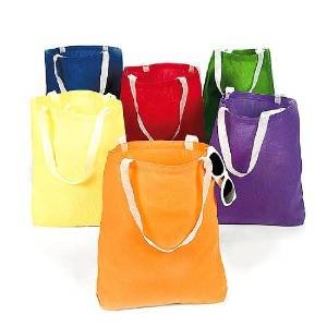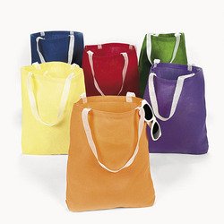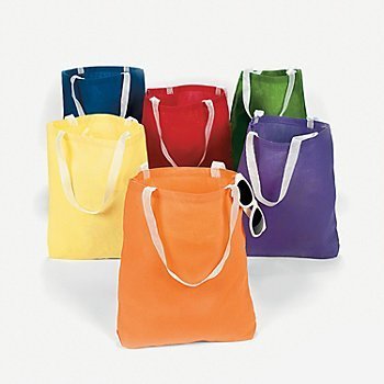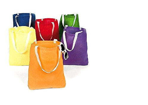 Product DescriptionLarge Canvas Bright Tote Bags. Assorted colors. Each piece bar coded. 12 " x 9.5" with 9" nylon handles.0