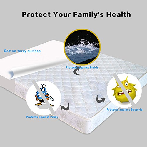 -. Feature : 1.Size Design - Queen Size Mattress Protector 60" x 80" - Fits 15"-21" deep. / 2.Material-Hypoallergenic Cotton Terry Surface With Membrane Back Coating. / 3.Easy to Clean - Machine wash & dry - For frequent accidents, buy 2 or more - while one is washed, the other protects the mattress. / 4.Waterproof - Top protection against perspiration, bed wetting, liquids and stains; 10-year quality guarantee. / 5.Application-Protects Against Dust Mites, Fluids, Urine, Perspiration, Allergens And Bacteria. Great For Those With Kids, Pets, Allergies, Asthma, Eczema Or Incontinence.