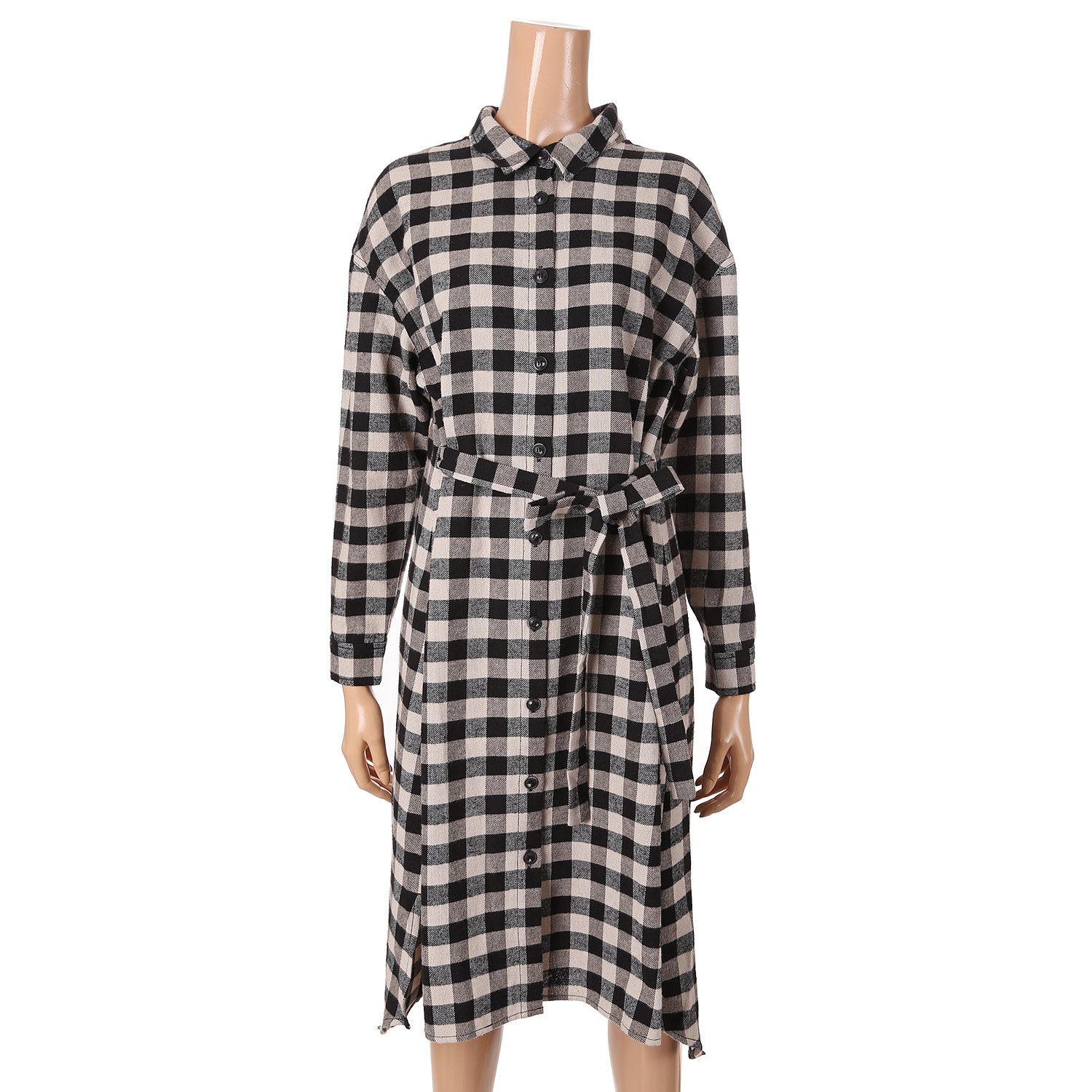 도톰하고 부드러운 롱 체크 남방 원피스 제품입니다