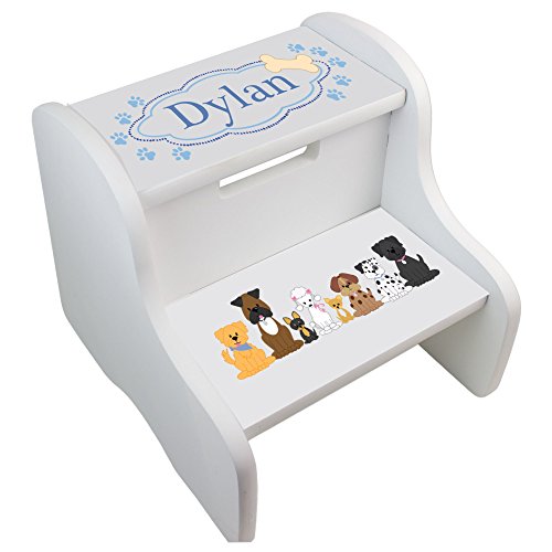 -. Title : Personalized Blue Dogs White Two Step Stool