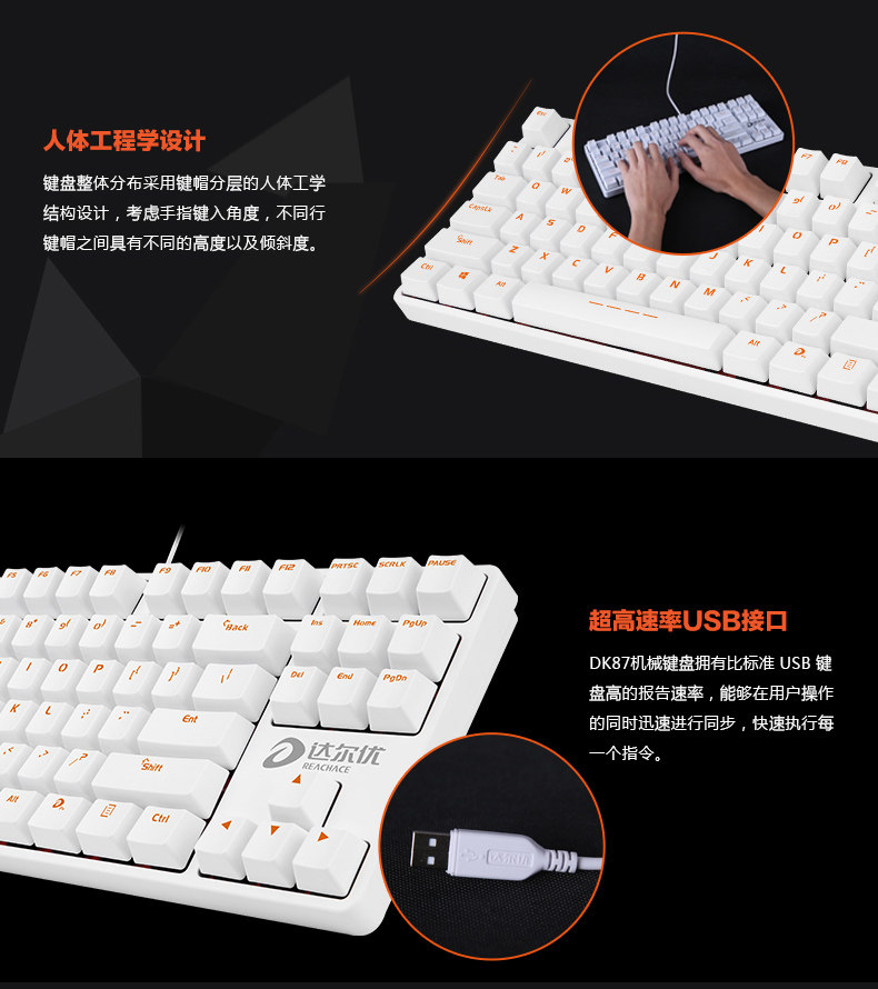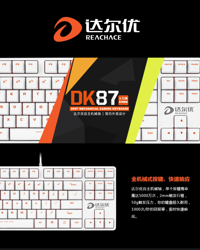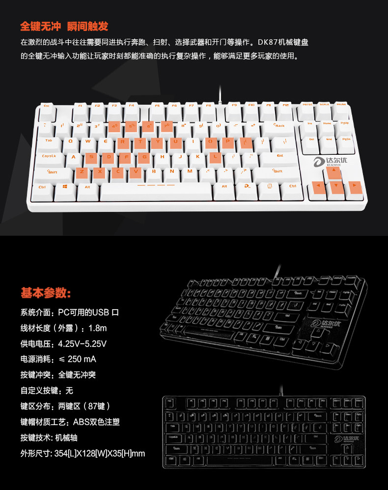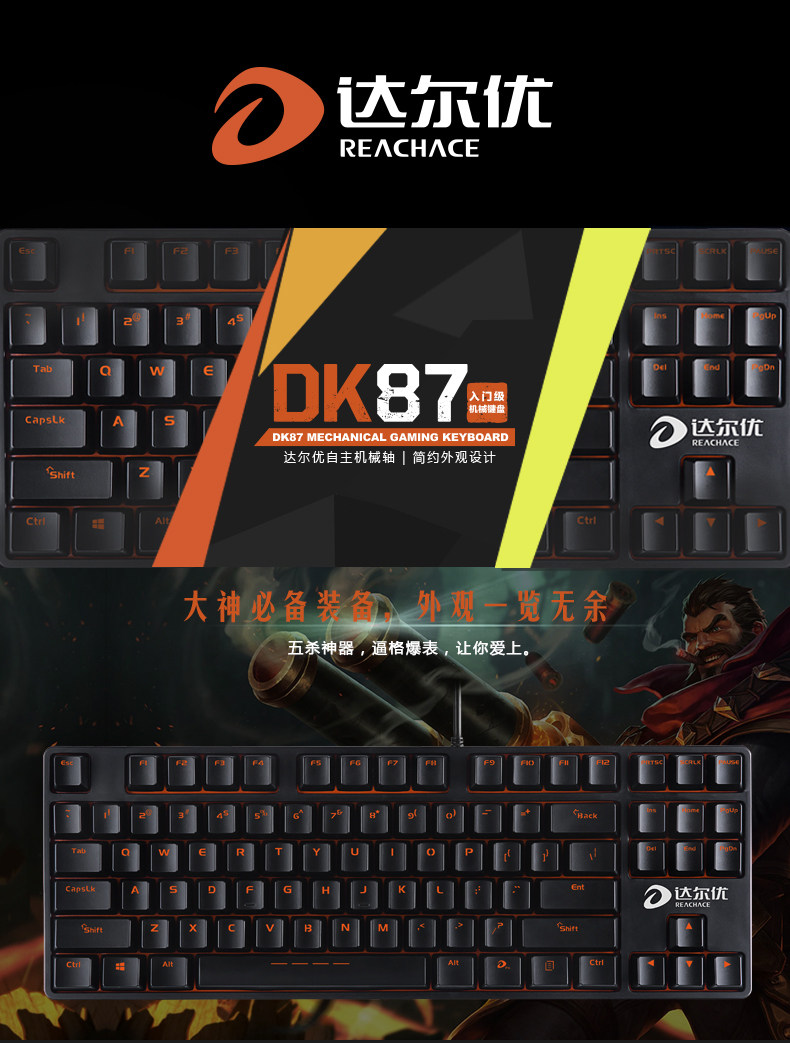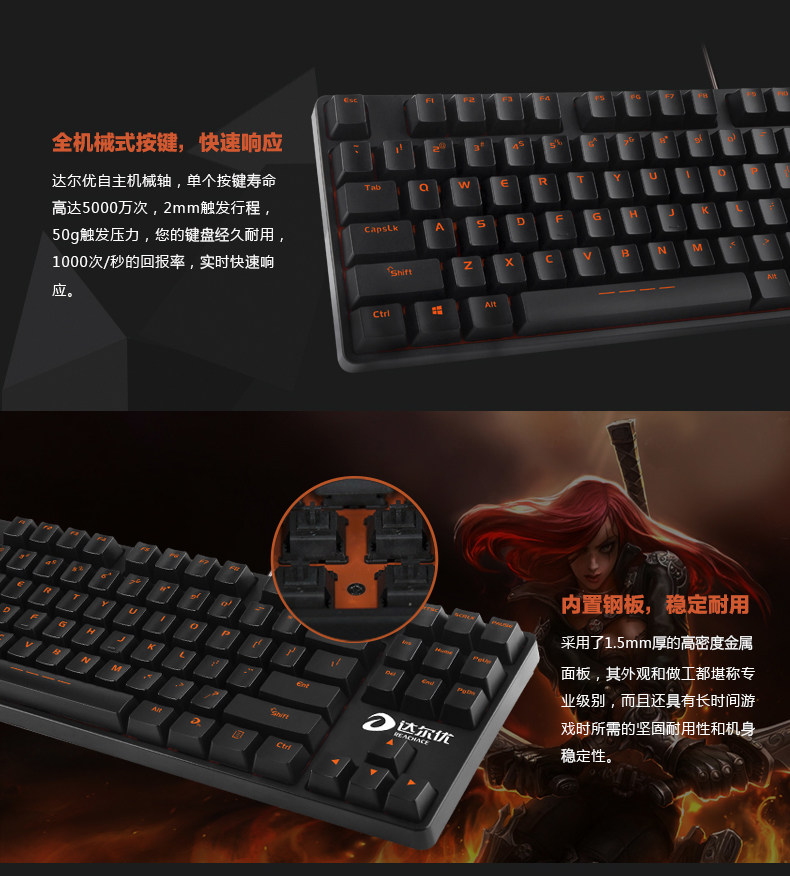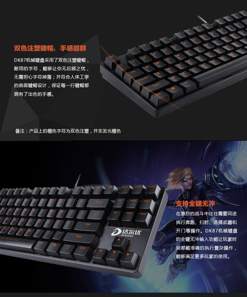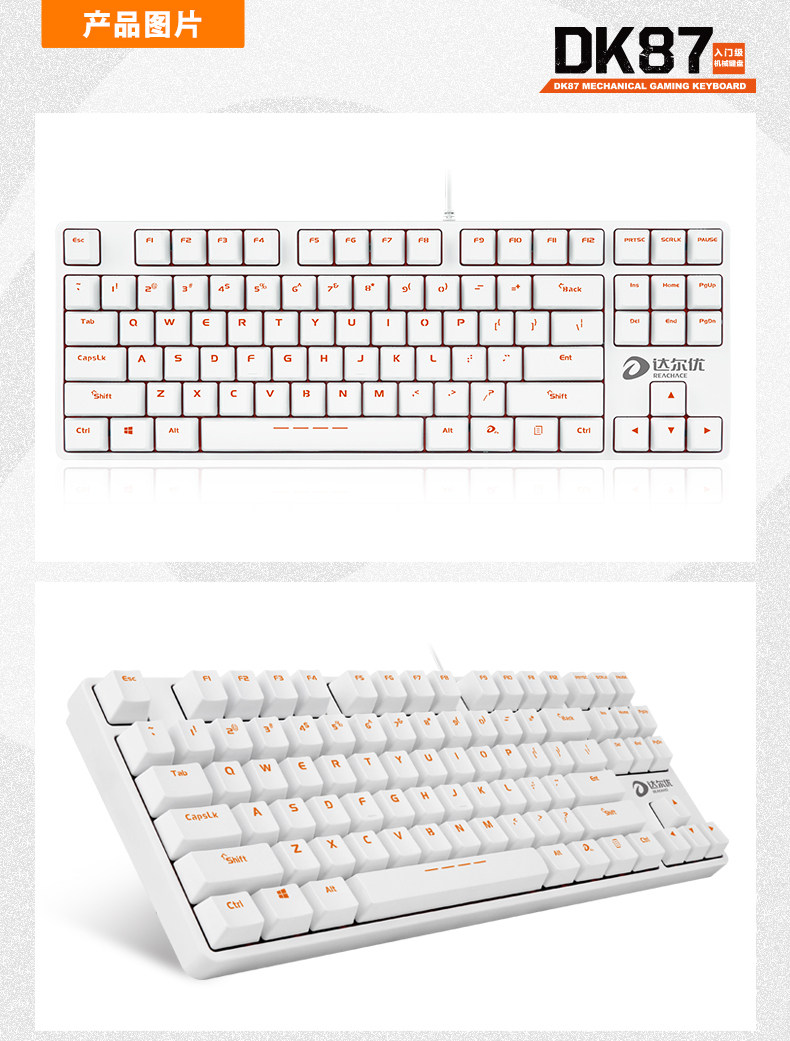 达尔优DK87达尔优轴机械键盘USB口无背光电竞游戏键盘 LOL CF WOW