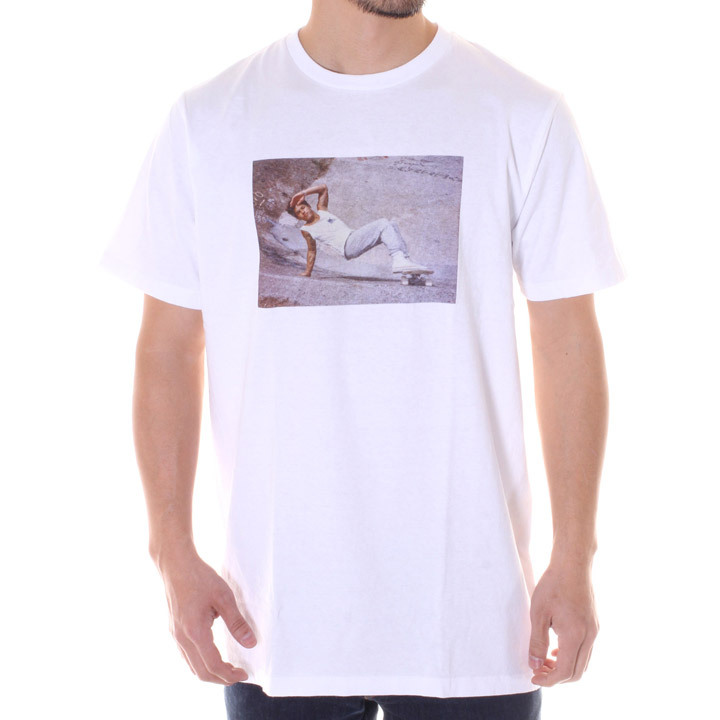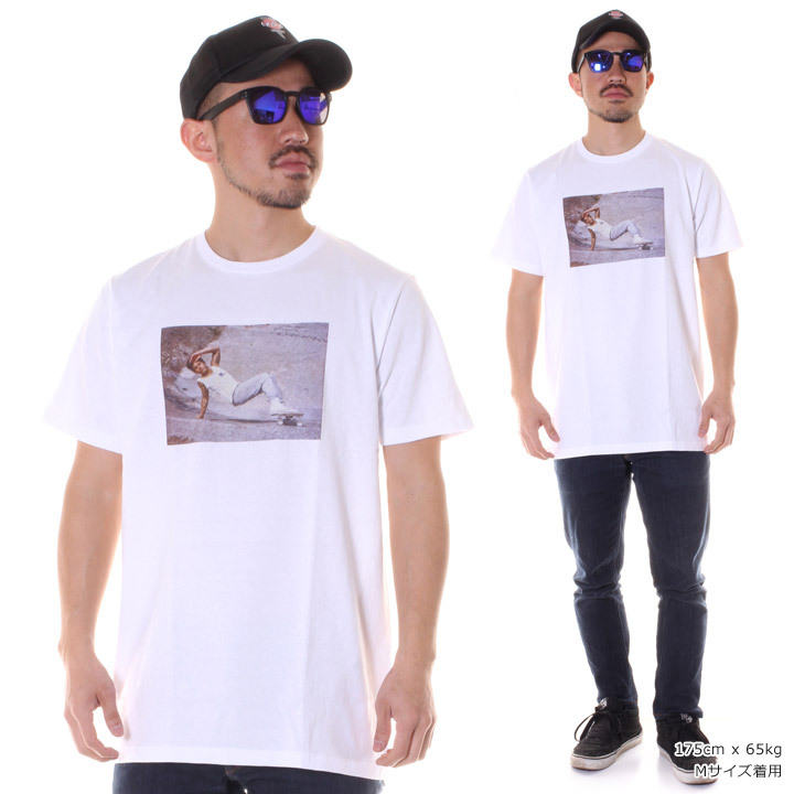 若かりし時代のスケートシーンをフロントに配し、背面には彼を象徴するシンボルロゴを絶妙なサイズで配置したファン垂涎のデザインに仕上がっています。