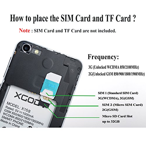 -. Title : Xgody X15s Dual SIM Android 5.1 Unlocked Smartphone 6 inch RAM 1GB ROM 8 GB Quad-core for AT&T Straight talk WCDMA GSM Cell phone