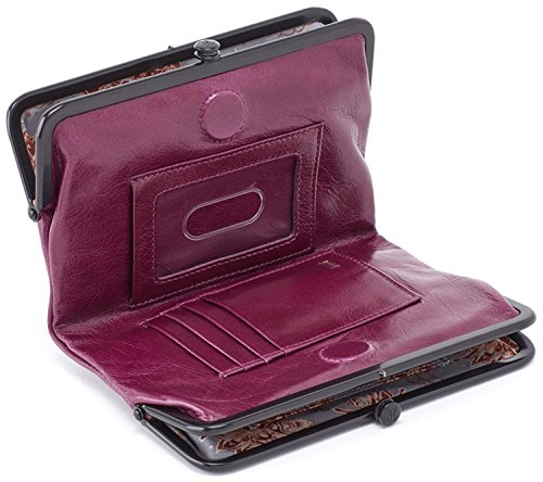 Superbly mixing class and function, this beautiful Glory Clutch Wallet by Hobo is the perfect accessory for all occasions! This clutch is made from smooth, top-grain leather which has been extra tumbled for a unique, broken-in vintage look and shine. Kiss-lock closures on either end open up to spacious storage compartments, one with 3 card slots and a slip pocket, and the other with a zip pocket. Flip it open, and you'll find 4 card slots and a thumb-glide ID holder, perfect for keeping your most important cards within easy reach. Measures 6.75" L x 1.25" W 4.25" H, folds out to 8.6" wide.