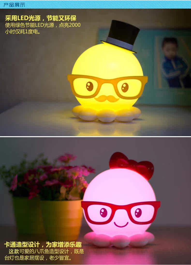 创意卡通八爪鱼小夜灯led充电节能台灯卧室宝宝喂奶睡眠床头