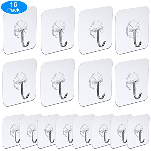 Transparent Wall Hooks, Heavy Duty 22lb/10kg Nail Free Non-trace Reusable Adhesive Powerful Hook,Waterproof,Oilproof Sticky Glue for Kitchen,Bedroom Wall Duty Wall Hook (16Pcs/Pack)
