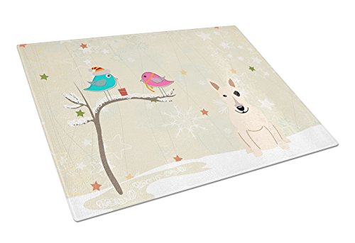 Caroline's Treasures BB2610LCB Christmas Presents Between Friends Bull Terrier White Glass Cutting Board, Large, Multicolor
