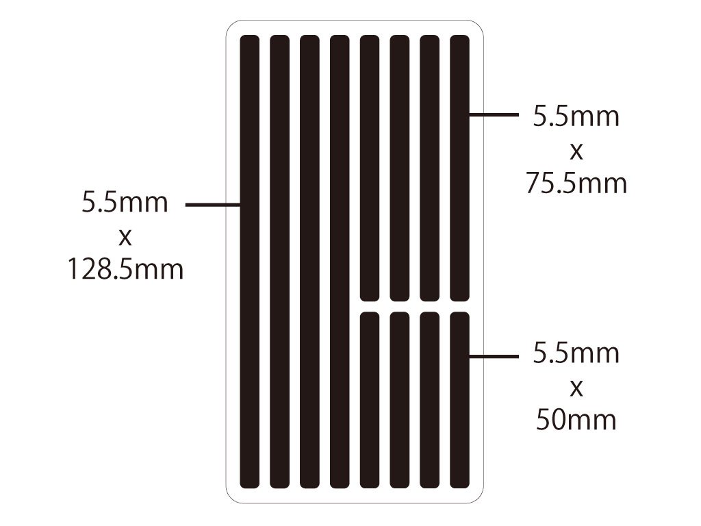 Four pieces of 3 types of width 5.5 mm × length 128 mm, 5.5 mm × 75 mm, 5.5 mm × 50 mm, totaling 12 pieces.