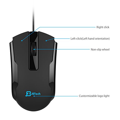 JETech® Left Hand Blue LED Wired USB Opitical Mouse Mice (Left Handed Edition)