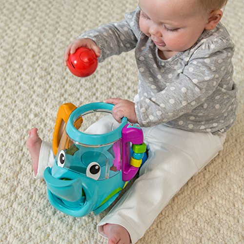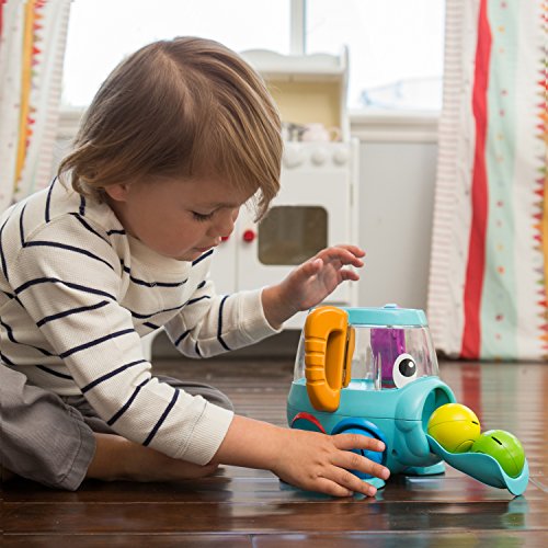 Fill, spill, count and chase. In mode 1, babies fill the wobbly elephant with colorful balls and are rewarded with fun sound effects and songs. In mode 2, put down the elephants feet and trunk. Toddlers can count up to 10 along with the elephant, chase balls that come sliding down the elephant's trunk, and sort the colored balls in the elephant's feet. Features 3 original songs, 15 encouraging phrases and 20 fun sound effects.Feature