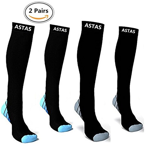 ASTAS Compression Socks for Men And Women (2 Pair) Sport Running Socks,Relief Prevent Swelling Shin Pain, Blood Circulation, Varicose,BEST Stockings(Unisex Size).