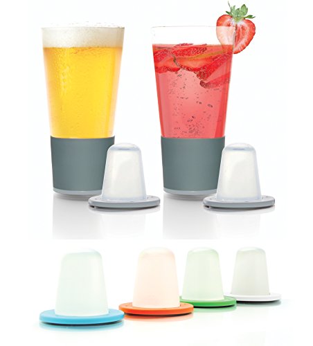 -. Feature : Set contains (2) 16oz Self-Chilling Pint Glasses (2 ) Gray Chilling Dimples + (4) Pack Colorful Replacement Dimple Cones. / Keeps Beverages Cold Until the Last Drop / Insulated Grip Is Easy To Hold. / Built-In Silicone Coaster Protects Furniture From Unsightly Rings / Dimple. Freeze, Insert and Enjoy. Repeat.
