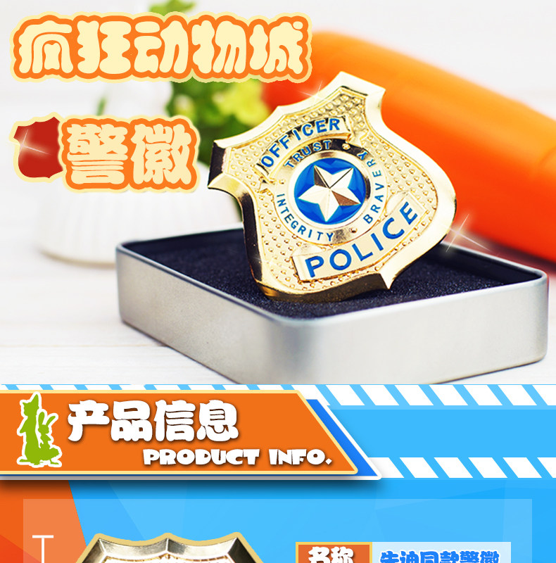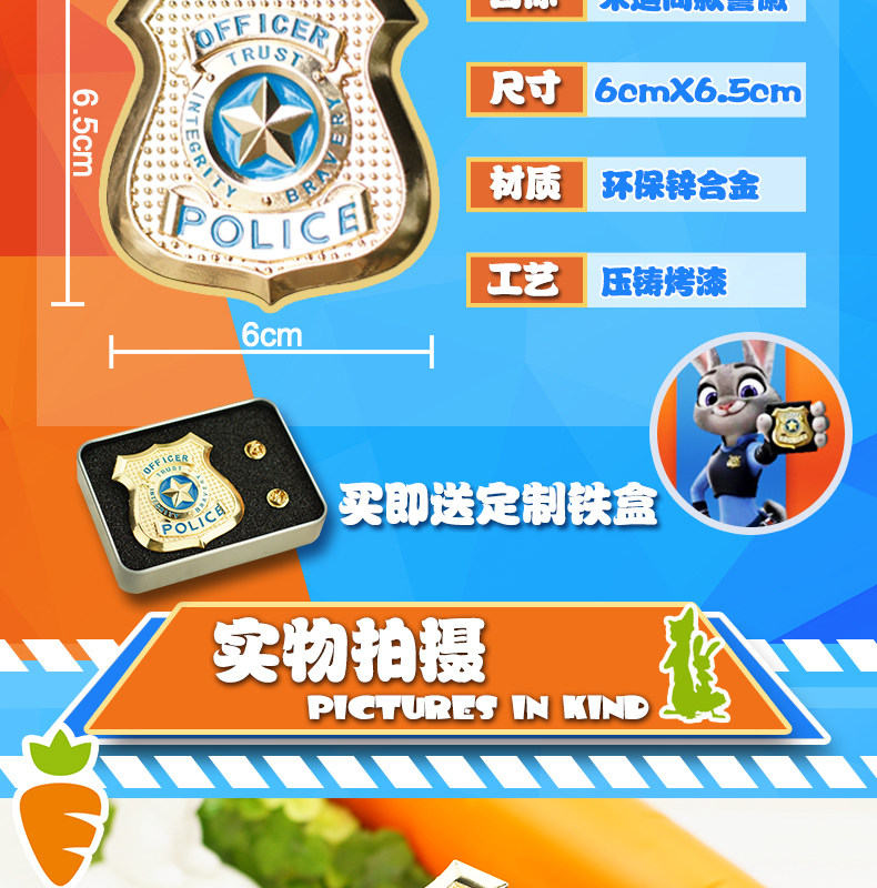 漫趣动漫周边疯狂动物车朱迪兔子警官徽章金属挂件胸章吊牌