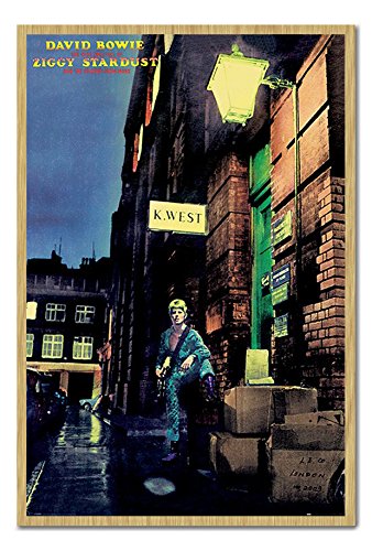 -. Title : David Bowie Ziggy Stardust Album Cover Poster Magnetic Notice Board Beech Framed - 96.5 x 66 cms (Approx 38 x 26 inches)