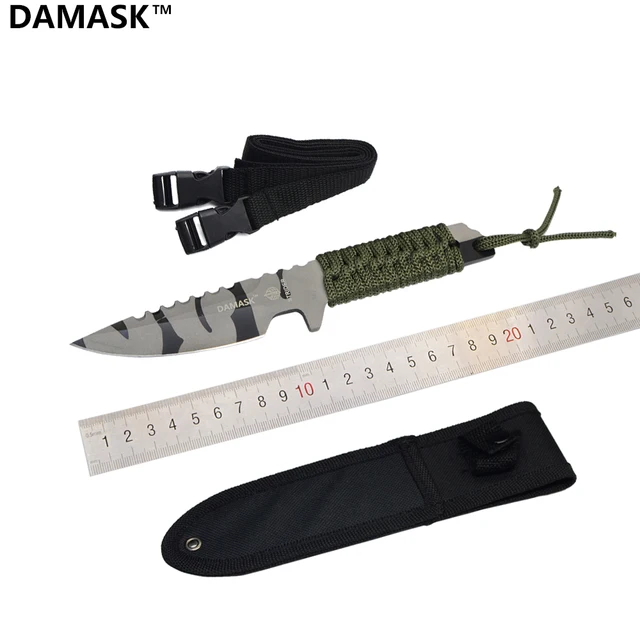 | [해외] 다 스테인레스 스틸 고정 블레이드 야외 스트레이트 칼 톱니 모양의 가장자리 레깅스 핸들 캠핑 사냥 칼 최고의 야외 도구 |