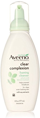 Aveeno Clear Complexion Foaming Cleanser helps prevent breakouts and improve skin tone and texture. This foaming cleanser leaves skin feeling soft and smooth. Salicylic acid treats and clears up blemishes. The mild formula with Active Naturals soy extract is oil-free, hypoallergenic, and non-comedogenic, gentle enough to use every day.Feature