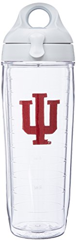 Tervis 1074972 Indiana University Emblem Individual Water Bottle with Gray Lid, 24 oz, Clear