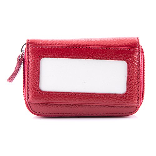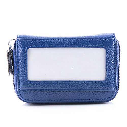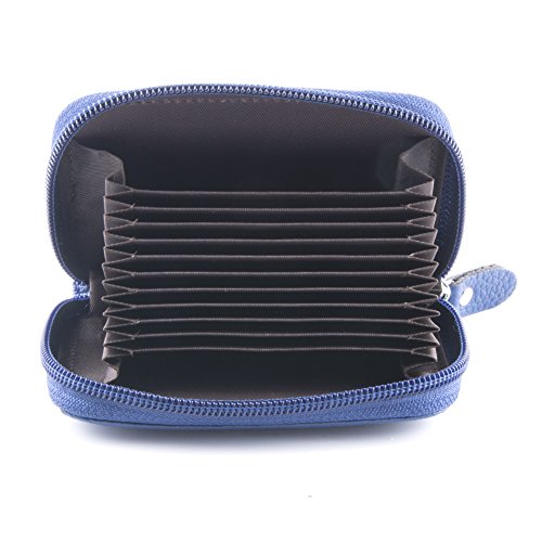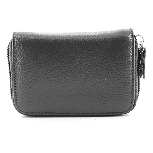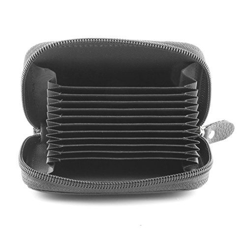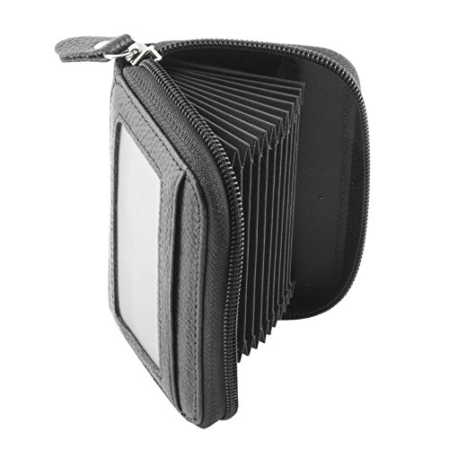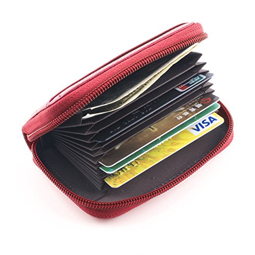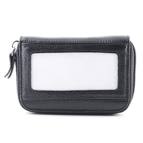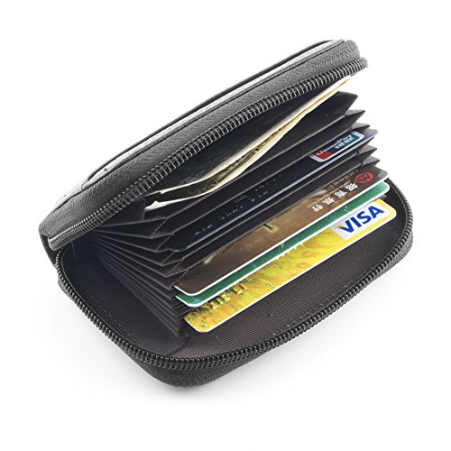Details Material: genuine leather Closure: metal zipper Inside: expandable card slots Pockets: 12 pockets in total Size: 4.25 x 2.75 x 0.75 (H x L x W) Good to hold credit cards, change, coins, receipts, social security card, etc