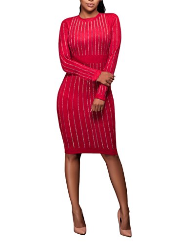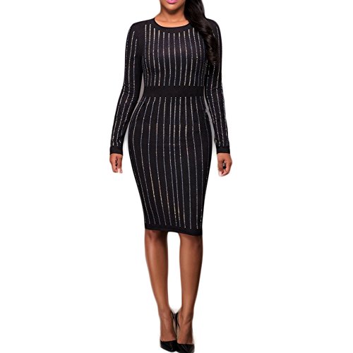 -. Title : Women's Sexy Long Sleeve Rhinestone Embellished Evening Party Dress