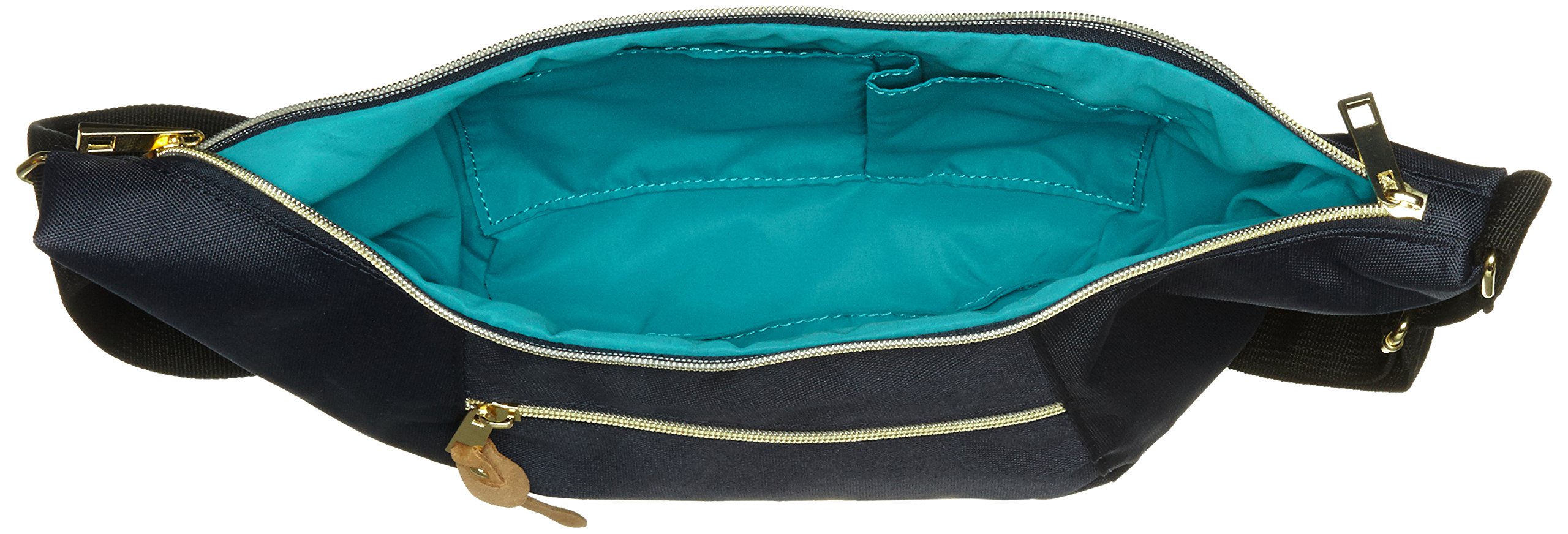 Suede parts casually decorated with metal and gold color fasteners give a sense of quality.