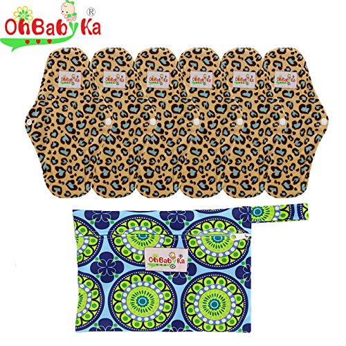 OHBABYKA Bamboo Reusable Sanitary Napkins Pads 6 Pcs, A Wet/Dry Bag (S)