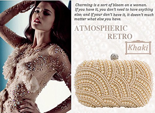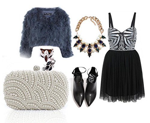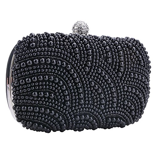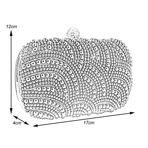 Material: Pearl Beaded Alloy 3 Colors available: Black, White, Rose Gold Dimensions: Length: 17cm, Width: 4cm, Height: 12cm Style: Clutch Bags Handbag size: Small Long Chain Included. Perfect For Bridal, Evening, Party And Night Outs. Very fashion design, the pattern is lovely, you will like it. Tip: Manual measurement may be 1-3cm error.