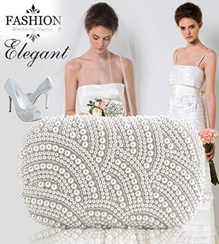 Etuoji Women's Elegant Beaded Pearl Clutch Rhinestone Bridal Wedding Sparkle Evening Purse