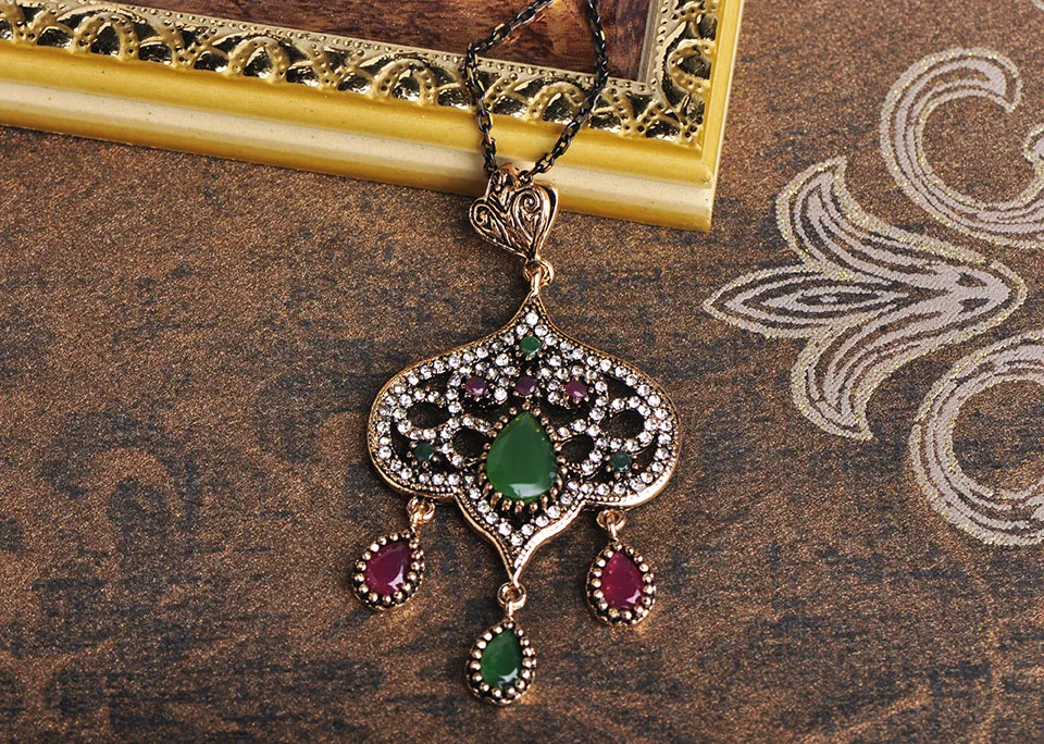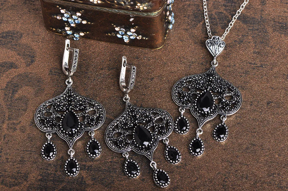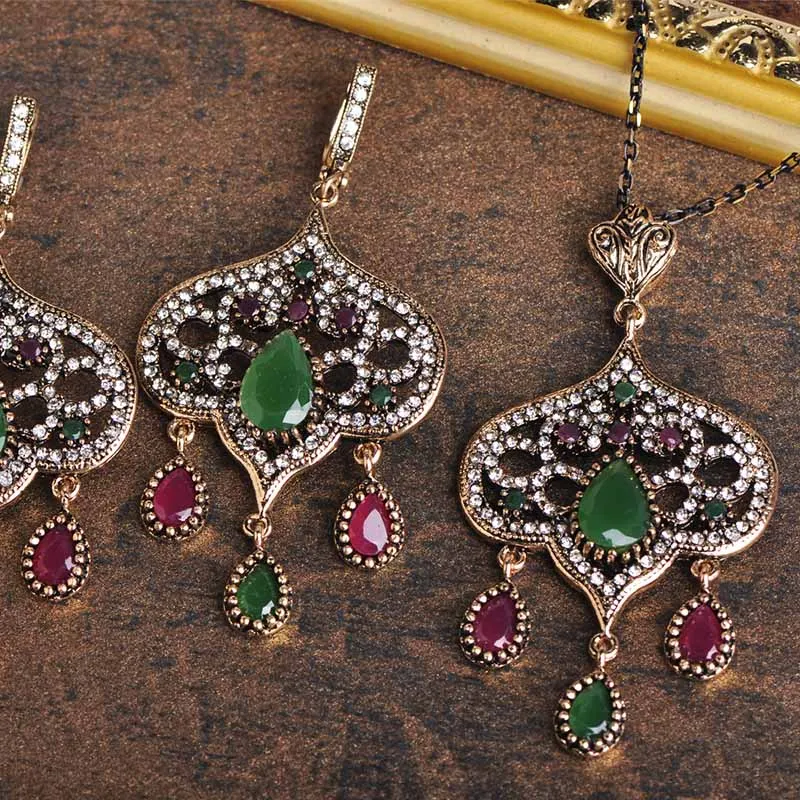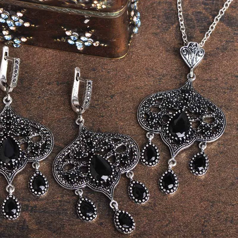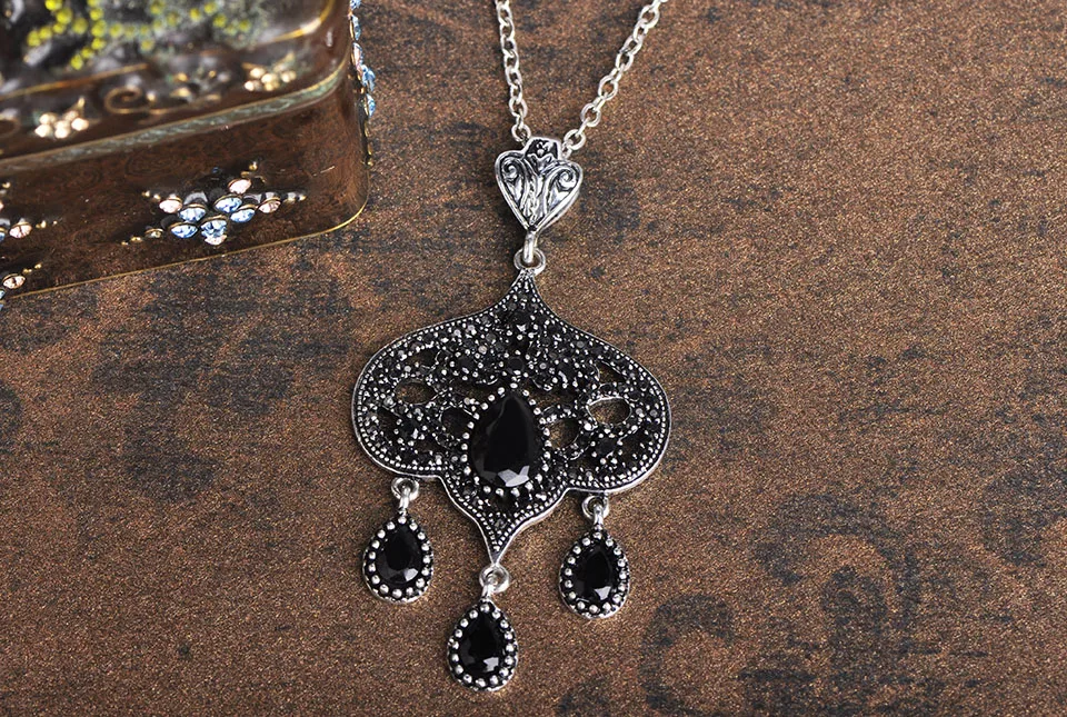 Keyword:2018 Retro Style Necklace Earrings Set Long Pendant Women
