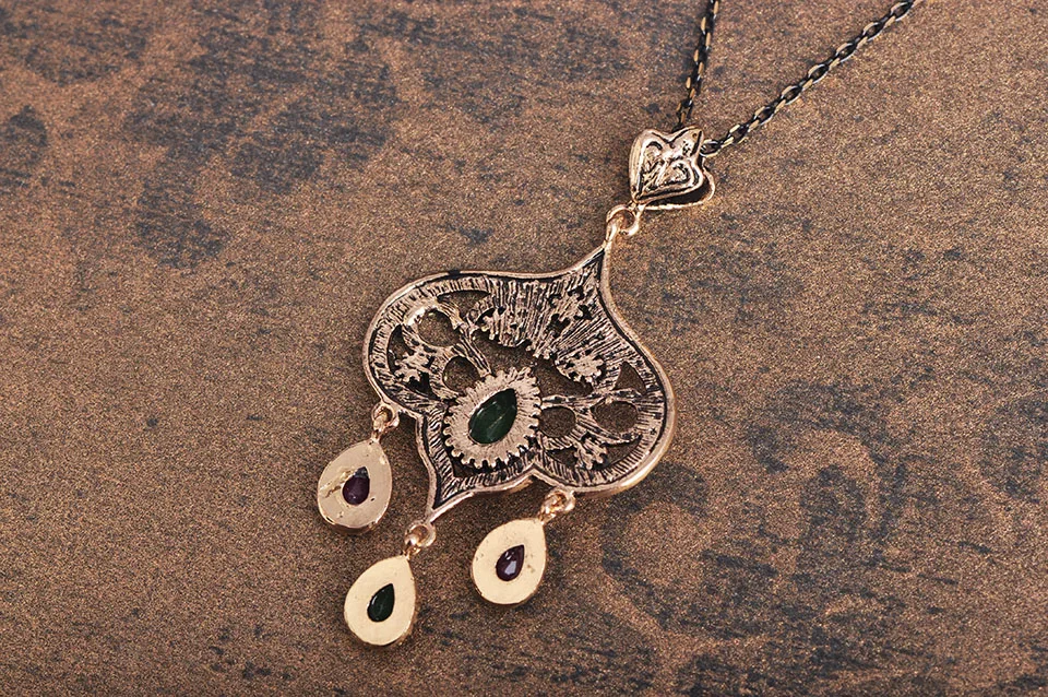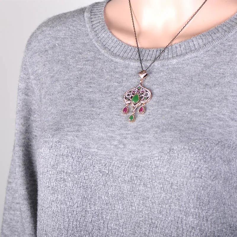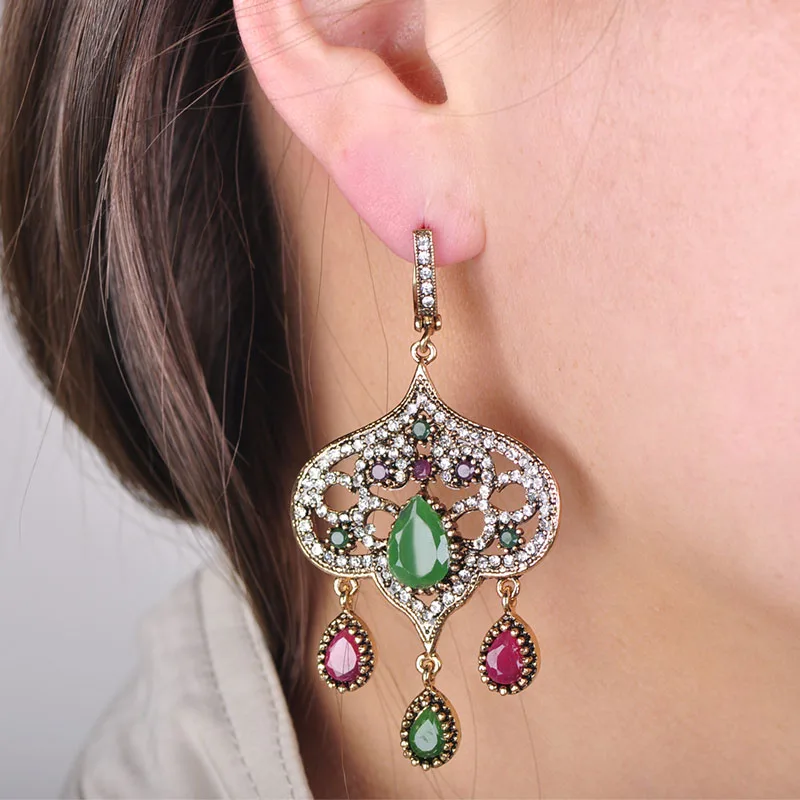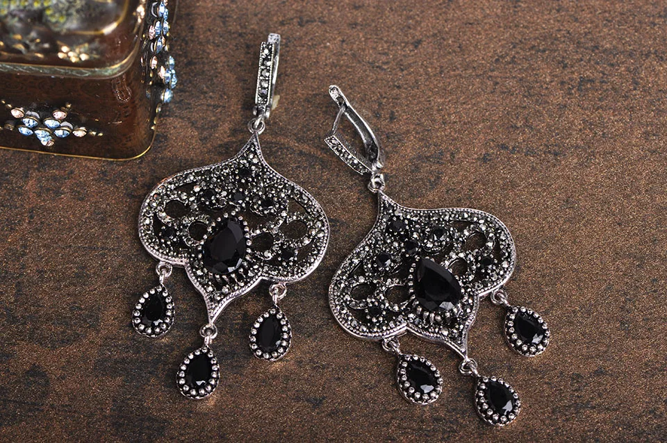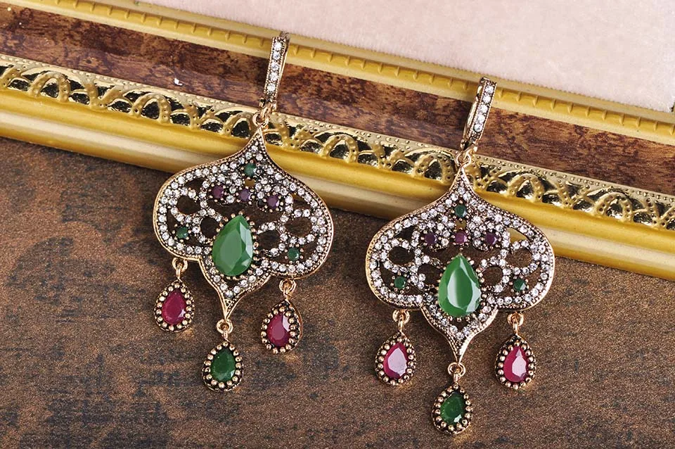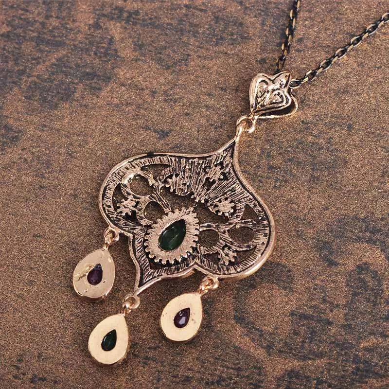 Keyword:2018 Retro Style Necklace Earrings Set Long Pendant Women