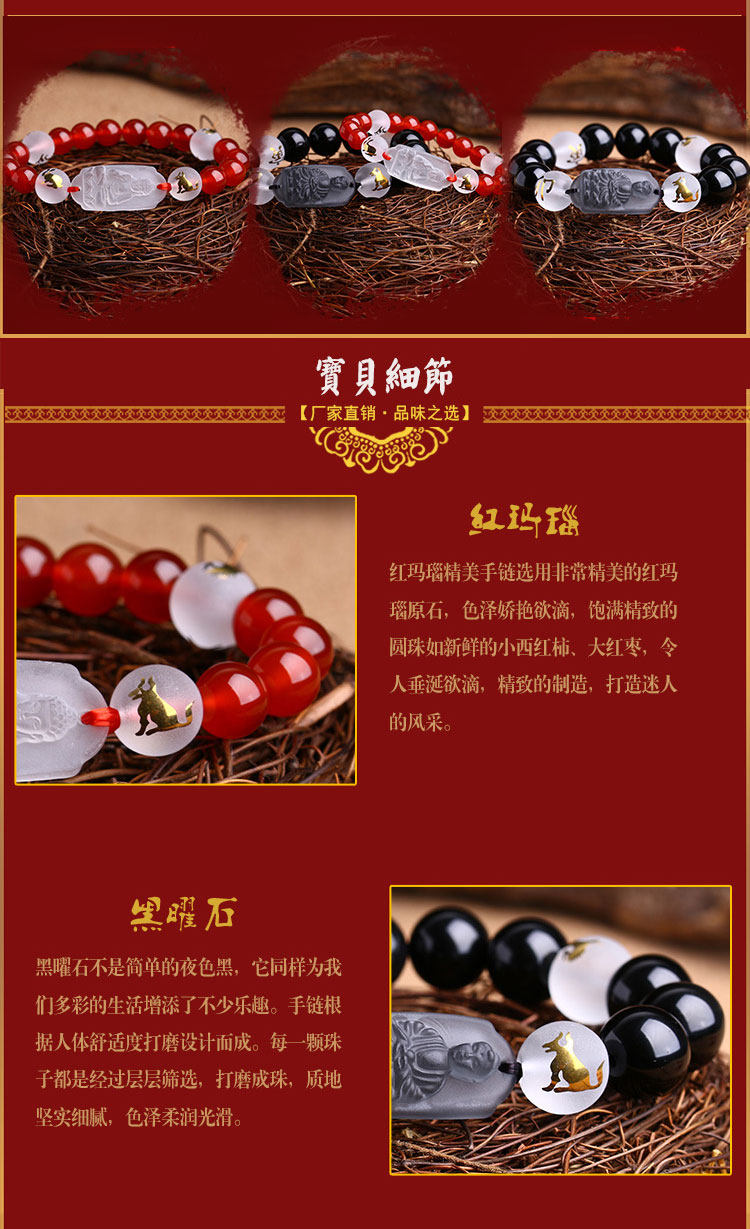 开光生肖属狗正缘守护三合六合招财吉祥物黑曜石手链男女款
