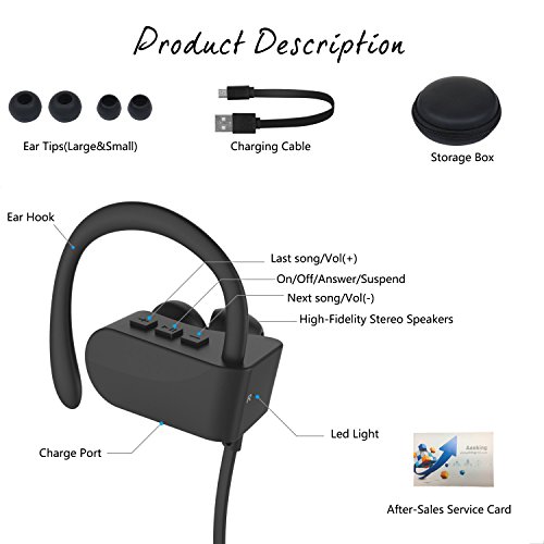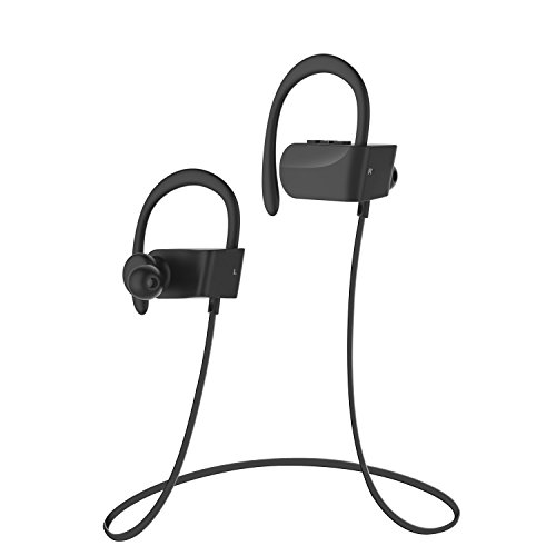 Bluetooth Headphones Wireless Earphones V4.1 Sports Stereo Earbuds In Ear Magnetic Sweatproof Headset Noise Cancelling Earhook Earpods with Mic for Runing, Workout, Gym,Yoga by Aooking (black)