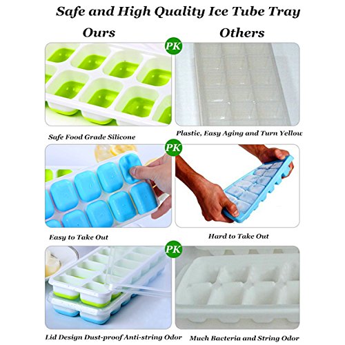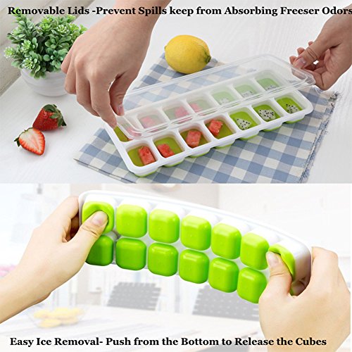 Product Features: 1.BPA free FDA approved 2.Sealed and balanced to prevent leaking and tipping in the freezer 3.Won't crack while freezing 4.Easy to fill, easy to use and easy to clean, just put in the dishwasher 5.Easy Ice cube Removal- just a simple push, the cube will pop out 6.Multipurpose- allow you to freeze more than just water 7.Stachable- Trays stack easily and neatly in the freezer without sticking 8.Easy to open and close in frozen state 9.Fast freezing and Dishwasher safe