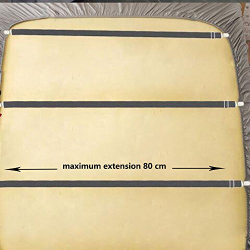 - WIDE COMPATIBILITY: Our Bed Sheet Holder Strips fit with fitted sheet and flat sheet; This versatile bed sheet gripper works with all types of bedding and with strong build of these straps, your bed sheet will stay in place for a long time and keep your bed always looking great. Also this Fasteners can be used as tablecloths covers,grill covers, cars seat cover, boats seat cover, motorcycle seat cover, scooters seat cover, couch seat cover, chairs seat cover and more.